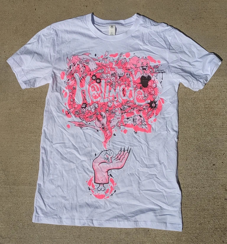 Printed with black and neon pink water based ink on an AS Color white shirt, which fits true to size, if not even a little big! It's premium stuff baby!!!