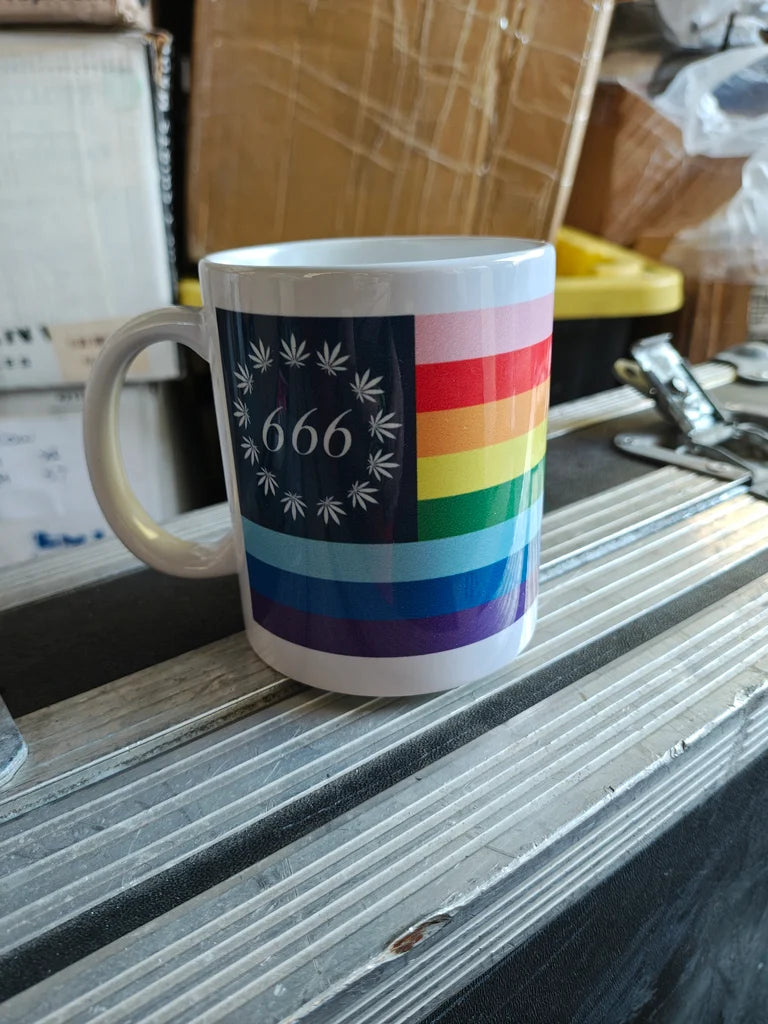 Hey there pal! Treat yourself to an extra strong cup o' joe, or tea, or maybe secretly some of the good stuff with this ceramic mug brandishing a flag that will keep the bad people away!!